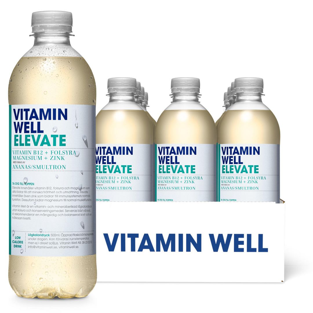 Hæv dit energiniveau med Vitamin Well Elevate - Dit daglige løft! Løft din dag med Vitamin Well! Denne 12-pakke er fyldt med vitamin B12, folinsyre og magnesium for at bekæmpe træthed og udmattelse. Men det bliver ikke kun bedre der – Elevate indeholder også zink til at styrke immunforsvaret og magnesium til at understøtte normal muskelfunktion. Giv din krop, hvad den fortjener, og mærk, hvordan Elevate tager dig til nye højder hver dag! - Elevate - 50 cl